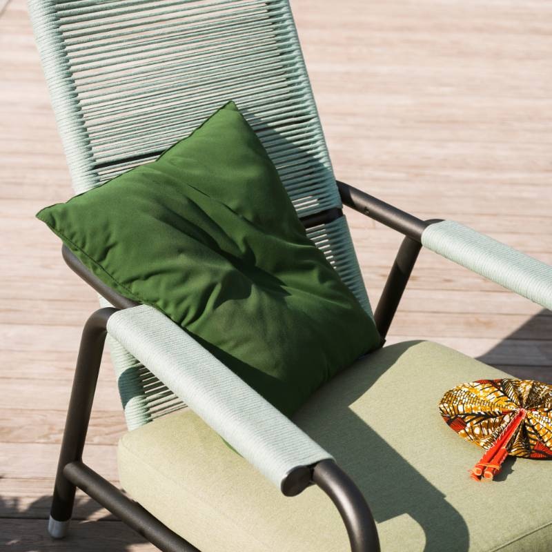 Bespannung aus rundgeflochtener Polyester- oder Acryl-Kordel (recycled) in verschiedenen Farben