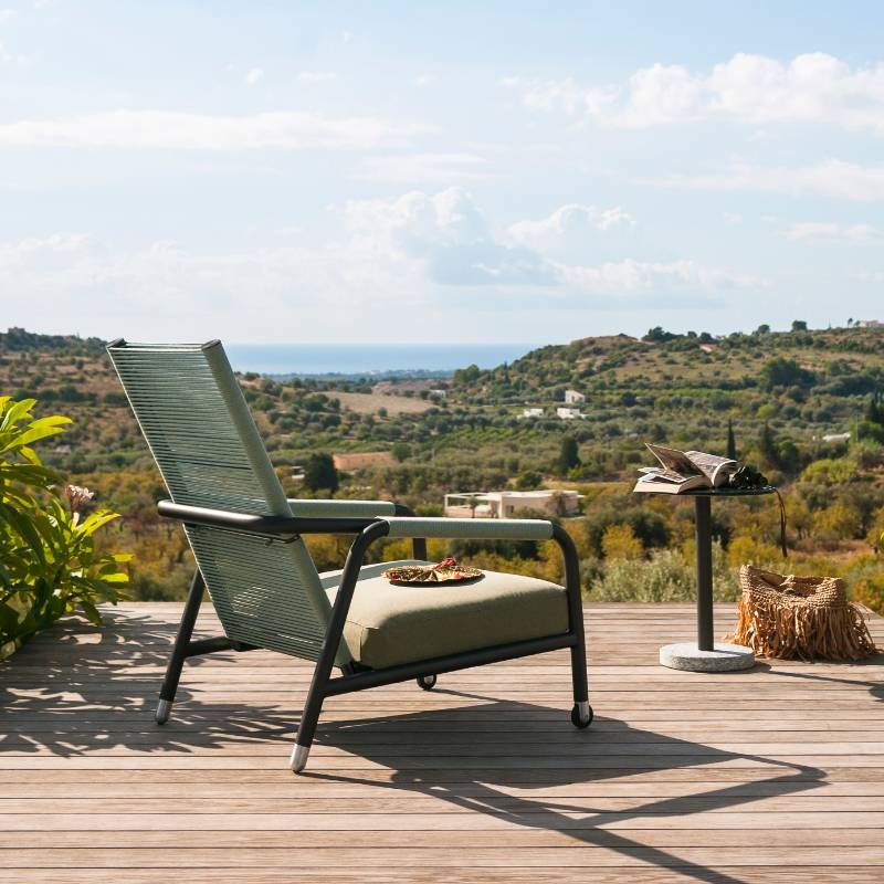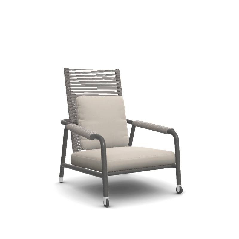 Lounge-Sessel mit hoher, verstellbarer Rückenlehne, Rollen und optionalem Kopfpolster