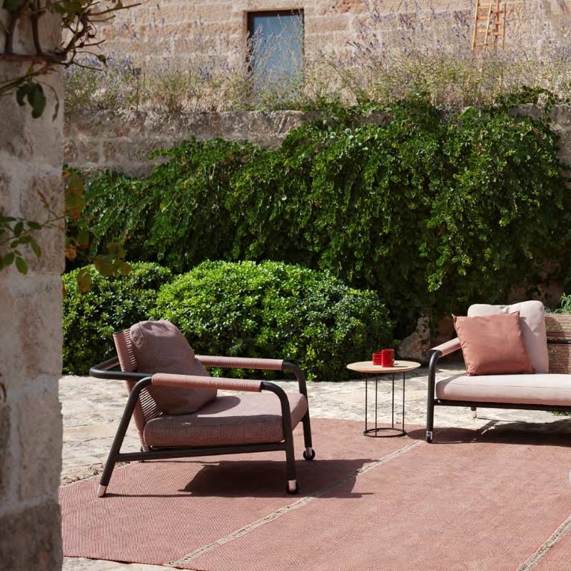 Bespannung aus rundgeflochtener Polyester- oder Acryl-Kordel (recycled) in verschiedenen Farben