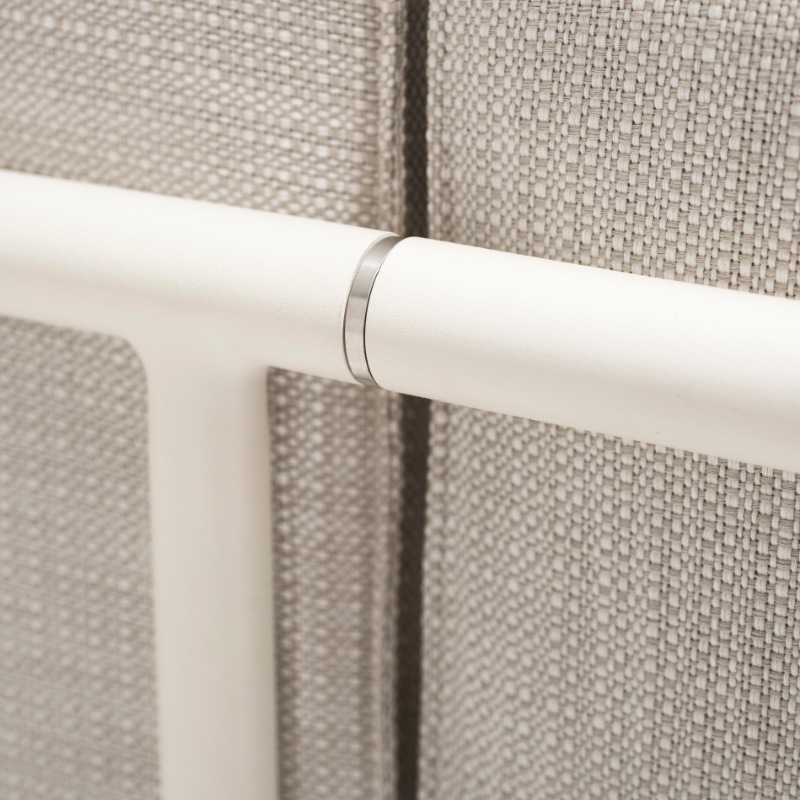 Rahmen in zwei Farb-Varianten, gefertigt aus pulverbeschichtetem Aluminium mit Verbindungen aus Aluminium-Druckguss und einer Basis aus glasfaserverstärkten Polypropylen-Lamellen.