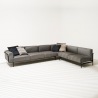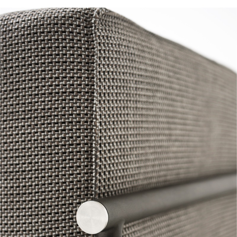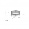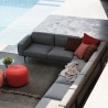 Sofa-Eckelement aus der ESTENDO Lounge-Möbelserie, bestehend aus einem Aluminium-Rahmen mit Lamellen-Basis und Polstern, die optional auch in wetterbeständiger Ausführung erhältlich sind.