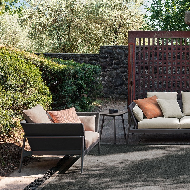 Rücken- und Lehnenkissen aus witterungsbeständen Flocken (ökologische, hanfähnliche Naturfaser) mit Kammern