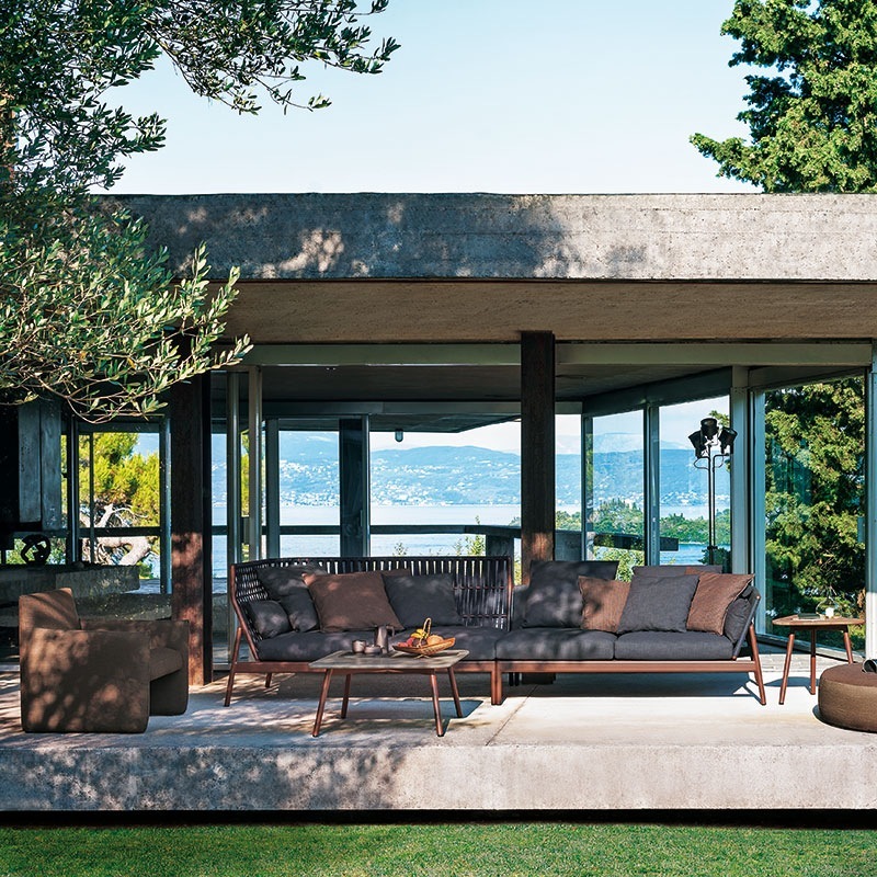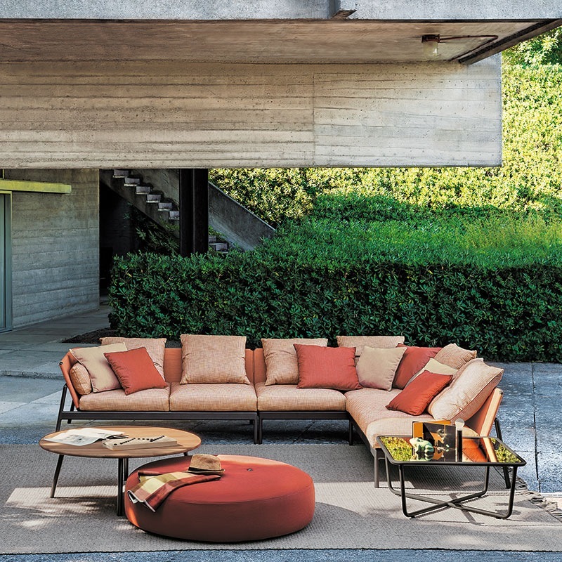 Rücken- und Lehnenkissen aus witterungsbeständen Flocken (ökologische, hanfähnliche Naturfaser) mit Kammern
